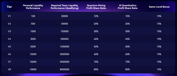 Также есть лидерская бонусная система с рангами от V1 до V8. Учитывается сумма вашего депозита и оборот вашей структуры. Исходя из этих данных вы будете получать дополнительный процент от дохода вашей структуры.