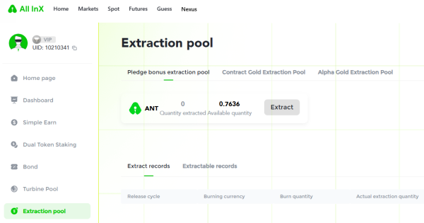 Все ваши начисления будут в разделе Extraction Pool. При накоплении хотя бы 1 токена ANT, его можно будет извлечь.