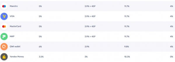 Данная платёжная система включает в себя: - PerfectMoney - Payeer - Maestro - VISA - MasterCard - МИР - QIWI wallet - Yandex Money - Bitcoin - Ethereum - Litecoin - Dash - Ripple - EOS