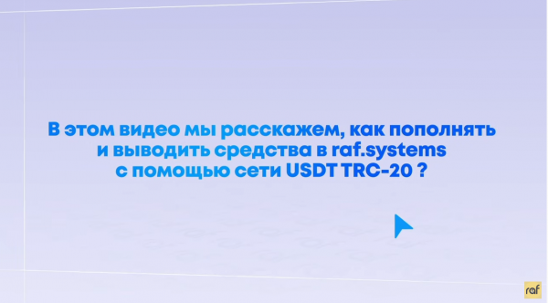 опубликовала видео-инструкцию о том, как как пополнять и выводить средства в raf.systems с помощью сети USDT TRC-20.