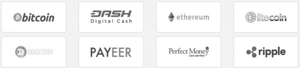 Выплаты: Ручные. Регламент до 24 часов Комиссия на вывод: Нет Минимальная сумма вывода: 1 USD, 0.0004 BTC, 0.02 ETH, 0.1 Dash, 0.05 LTC, 10 XRP, 500 DOGE, 100 RUB Платежные системы: PerfectMoney, Payeer USD, Payeer RUB, Bitcoin, Litecoin, Ethereum, Ripple, DogeCoin.