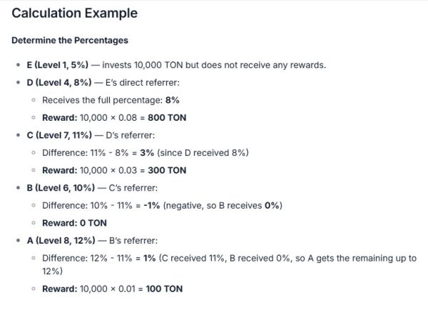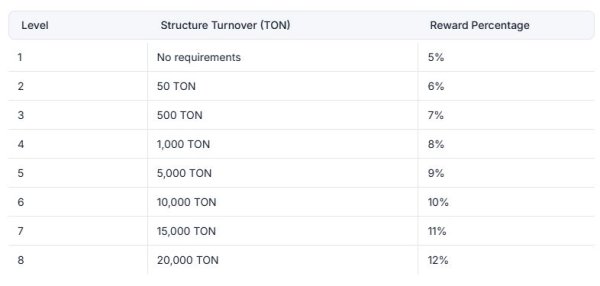 Также вы будете получать процент от тех TON, что ваш реферал первого уровня тратит на стейкинг.