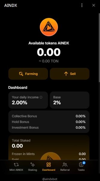 AINDXbot — это инновационная инвестиционная платформа на базе Telegram Mini App, ориентированная на фарминг, стейкинг и DeFi-механики с использованием утилитарного токена AINDX.