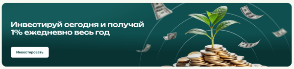 Для инвесторов в проекте очень простое и понятное предложение. Вы предоставляете средства на срок в 1 год под 1% в сутки. По окончанию срока работы депозита он будет вам возвращён. Таким образом за год вы получите +365% прибыли.