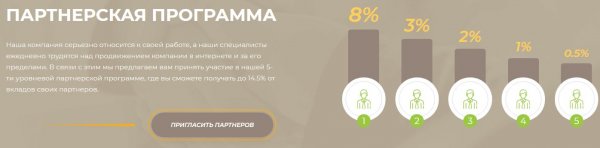 Реферальная программа подразумевает 2 вида заработка: - Стандартные отчисления от депозитов, что сделали ваши рефералы - Бонусное поощрение за оборот структуры