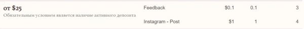 Если ваш депозит от 25$, вы можете дополнительно зарабатывать по 0.1$ и 0.1 баллу за один отзыв на сайте проекта каждые 3 дня. Так же вы можете получать по 1$ и 1 баллу, каждые 4 дня за пост в вашем Instagram аккаунте. Таким образом, инвестируя 25$, вы можете каждый месяц получать дополнительно по 8$.