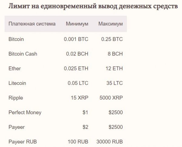 Выплаты: Инстант, можно настроить автомат. При проблемах со стороны платёжных систем может быть задержка до 48 часов. Комиссия на вывод: Нет Минимальная сумма вывода: - Платежные системы: PerfectMoney, Payeer USD, Payeer RUB, BitCoin, BitCoin Cash, Ethereum, LiteCoin, Ripple