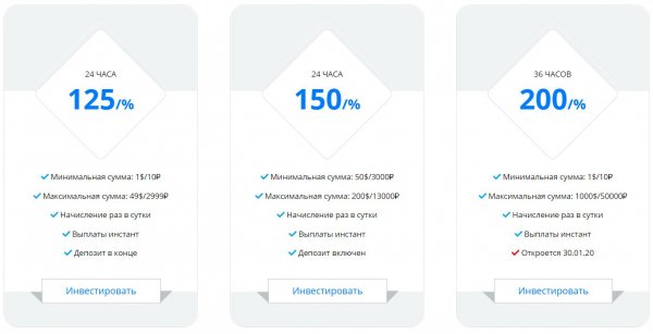 Со старта у проекта только 2 тарифных плана и они прямо таки очень вкусные. Но так же обещается, что будет открыт ещё тариф с доходностью в +100% за сутки. Дата открытия написана 30.01.2020. Дойдёт ли дело до этого? Посмотрим, увидим.