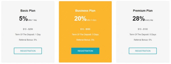 Как уже сказал выше, у проект три тарифных плана, все они разные по своей сути, но все являются рабочими. Первый тариф - чистая классика, второй тоже классика, но процентная ставка высока. Ну и третий тариф, который любят многие - депозит включён в выплаты, но крупняк здесь не погонять, админ лимитировал тариф.