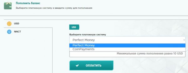 Для работы с депозитами в проекте существует только одна платёжная система, ещё вы можете инвестировать в криптовалюте через coinpayments. При этом стоит отметить, что ваш депозит будет сконвертирован в доллары. Так же вы можете использовать токен NNCT для снижения рисков, ведь ваш депозит будет страхован.