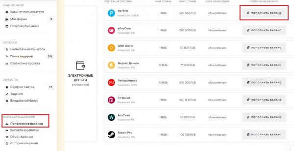 Выплаты: Инстант Комиссия на вывод: Нет Минимальная сумма вывода: От 1 рубля, в зависимости от платёжной системы Платежные системы: PerfectMoney, Payeer, ЯндексДеньги, Qiwi, Банковские переводы, BitCoin, Ethereum, LiteCoin, Dash, Ripple, DogeCoin и ещё много всего.