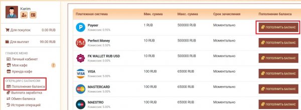 В личном кабинете переходите в раздел Пополнение баланса Выберите платёжную систему и нажмите кнопку Пополнить баланс