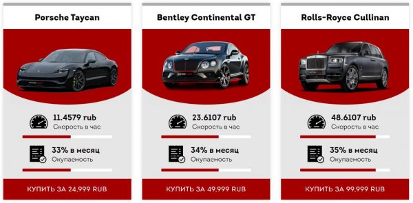 Во втором варианте - Автопарк, находятся 6 уже более дорогих автомобилей, которые так же покупаются на срок в 180 дней, но имеют доходность уже от 30% до 35% в месяц.