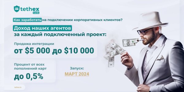 А если вы как партнёр привлекли клиента с бизнесом, который интегрирует систему TethEx, то вы поучите комиссионные и они весьма щедрые.